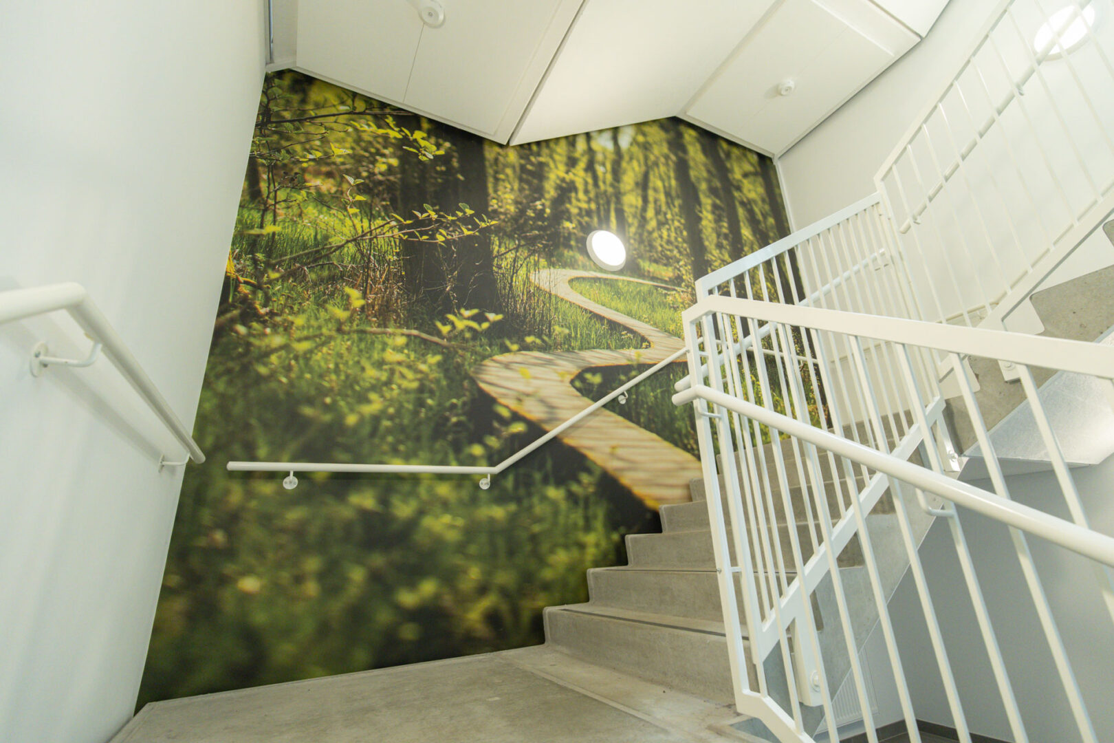 Der er særlig fokus på bæredygtighed og biodiversitet – og der er anlagt grønne udenomsarealer med gode trænings- og opholdsmuligheder for beboerne.