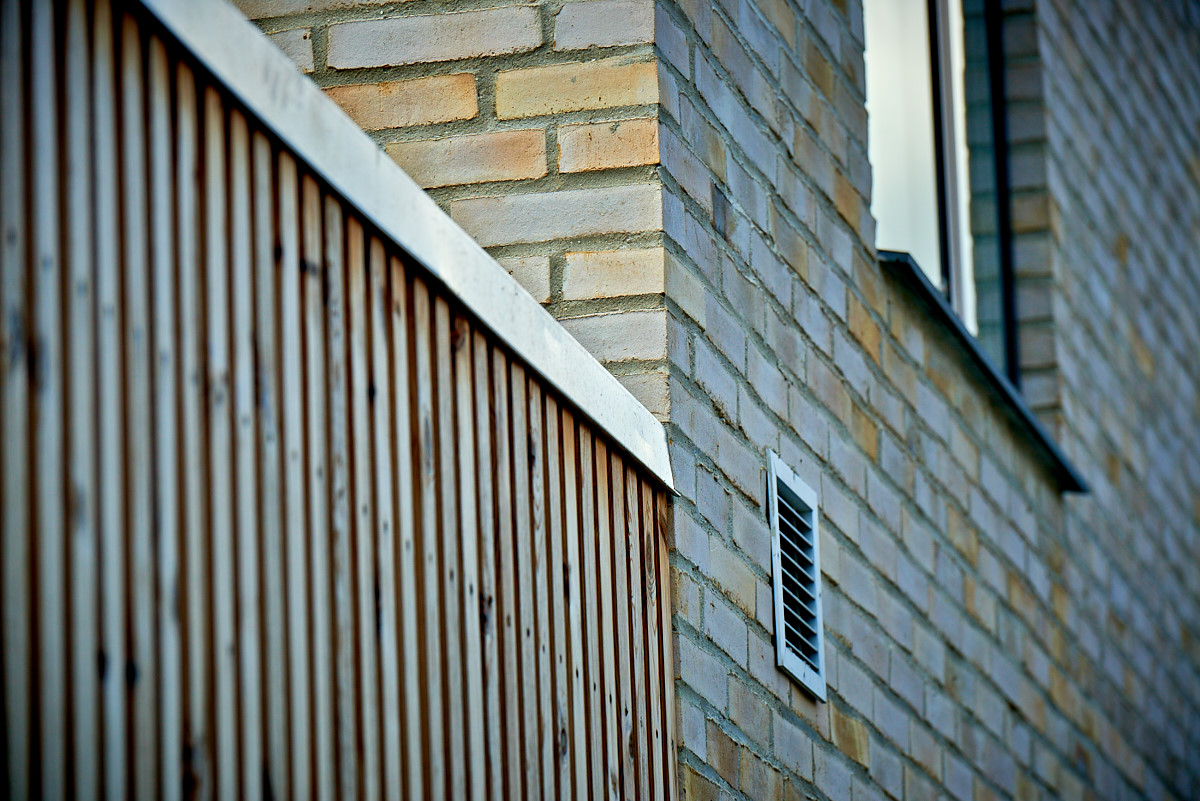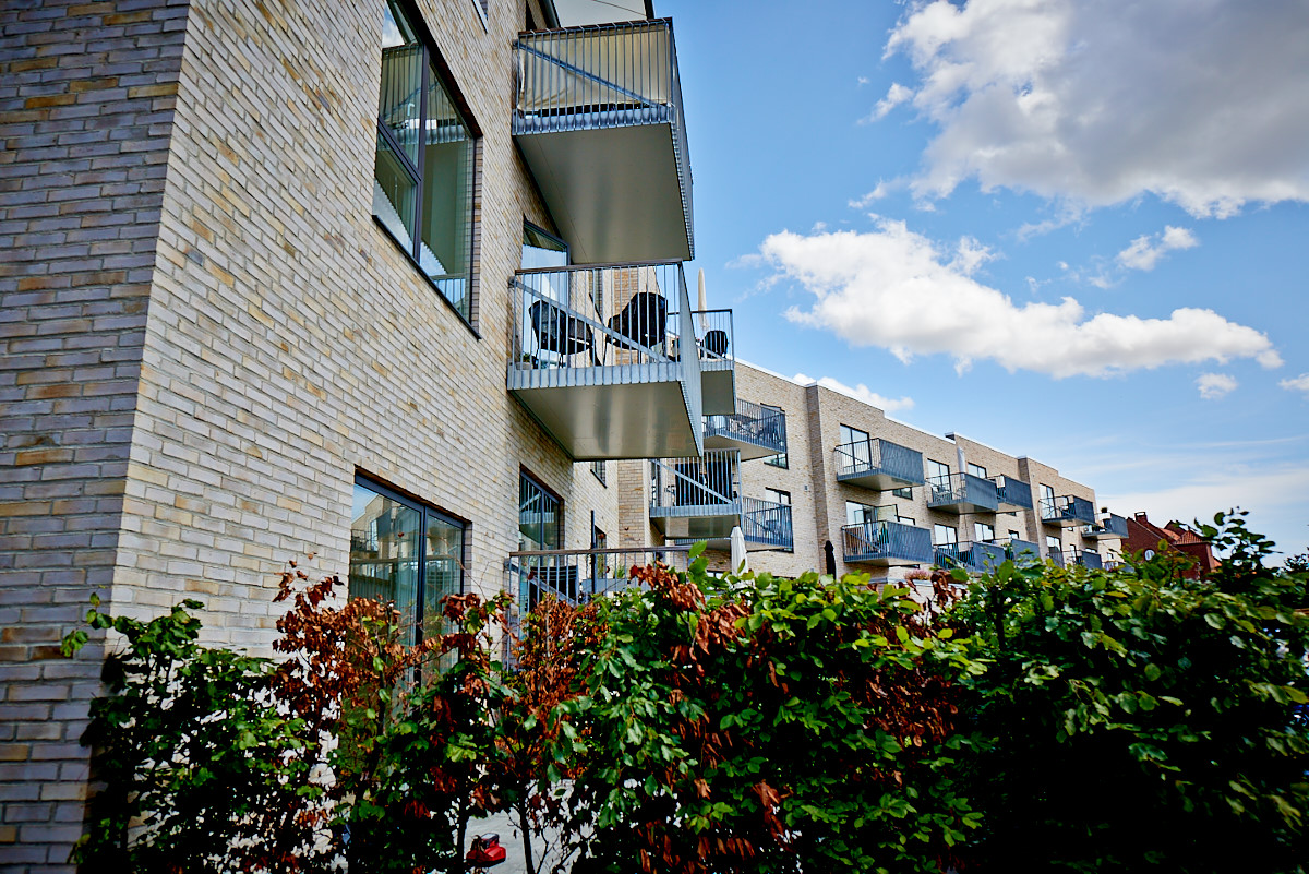 På havesiden er der altaner på facaden for 1. og 2. sal samt haver med træterasser til stueetagesboliger og stort fælles grønt område.
