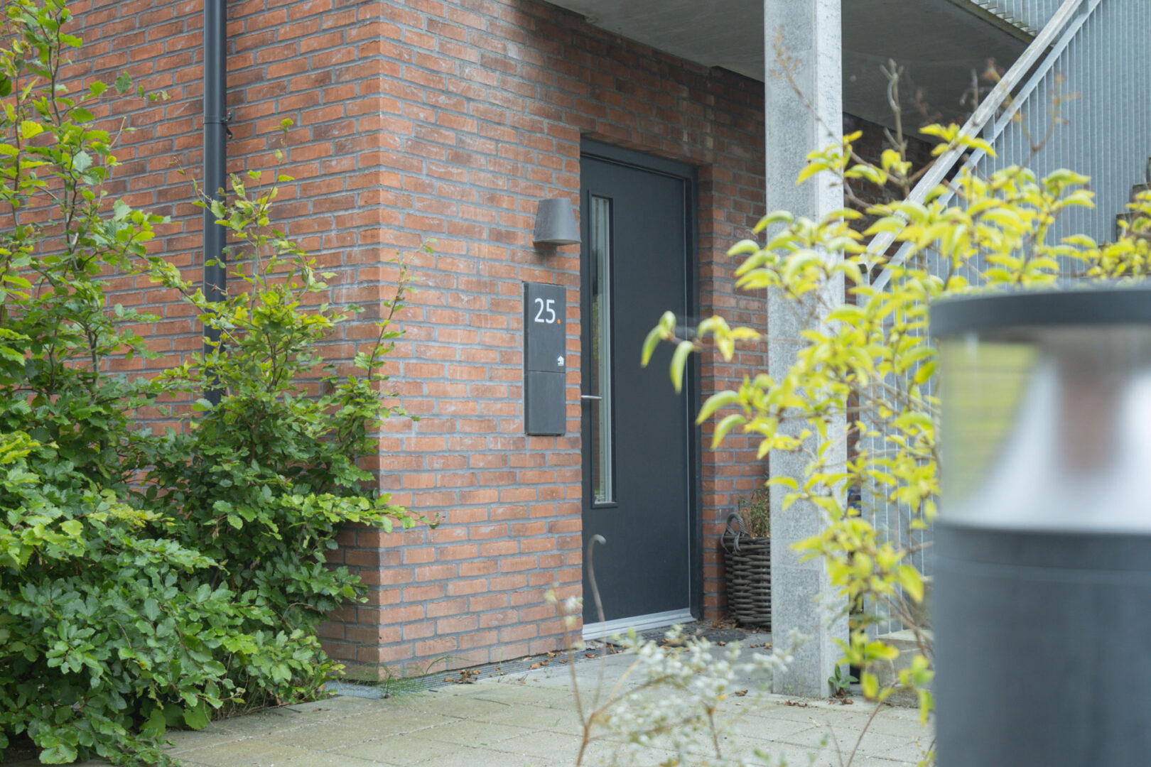 Facadematerialerne består af røde håndstrøgne tegl samt mindre partielle områder med lodret beklædning ved fritliggende skure.