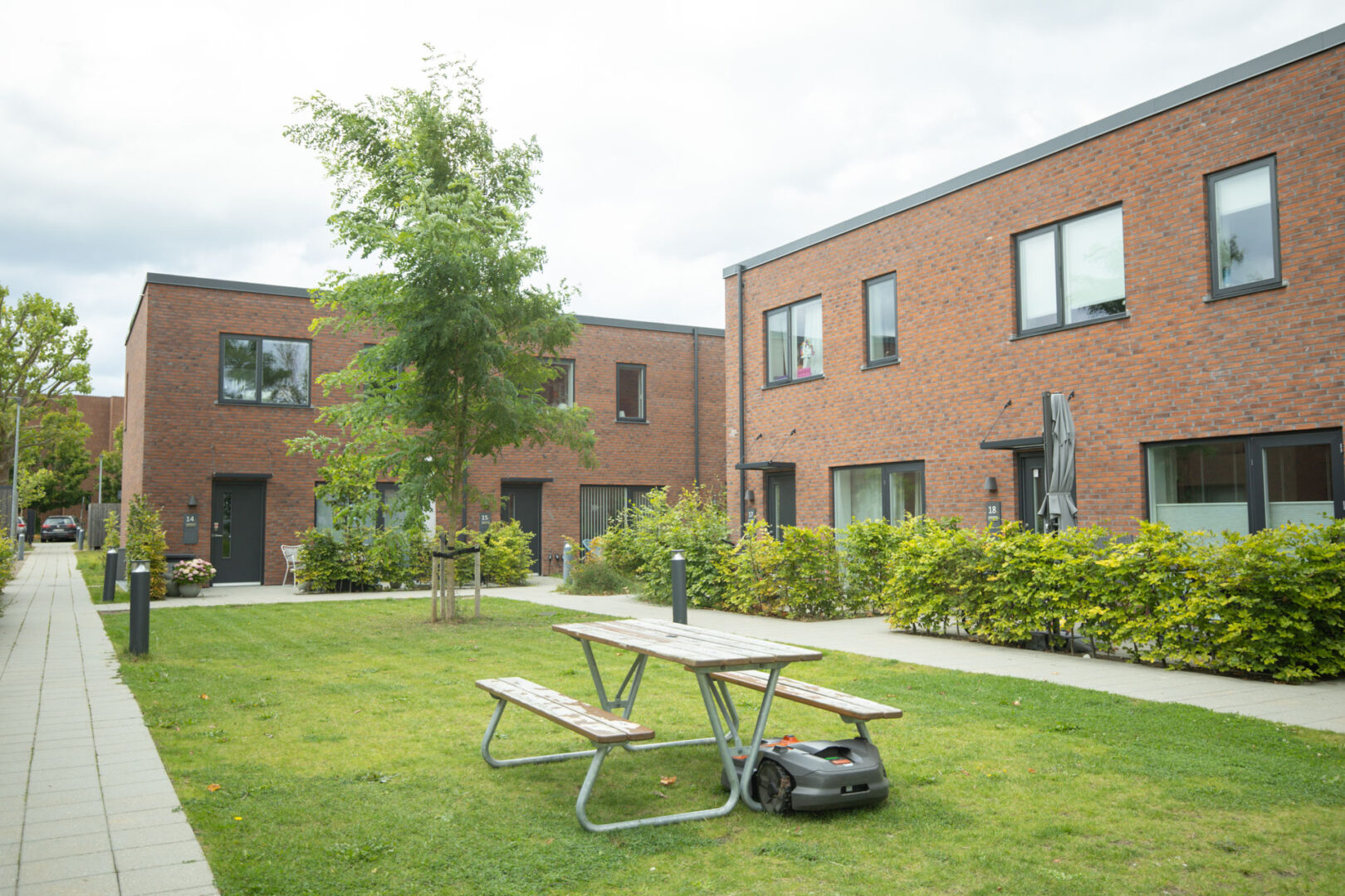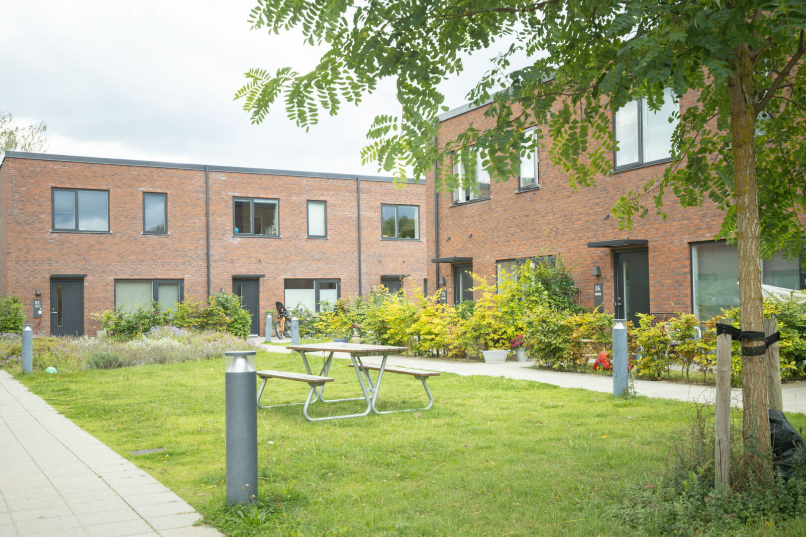Projektet omfatter 39 boliger i 1 og 2 plan udført i klynger af 3. De tre klynger er ens, men spejlet øst-vest og nord-syd på grunden ved Lundeparken i Skovlunde.