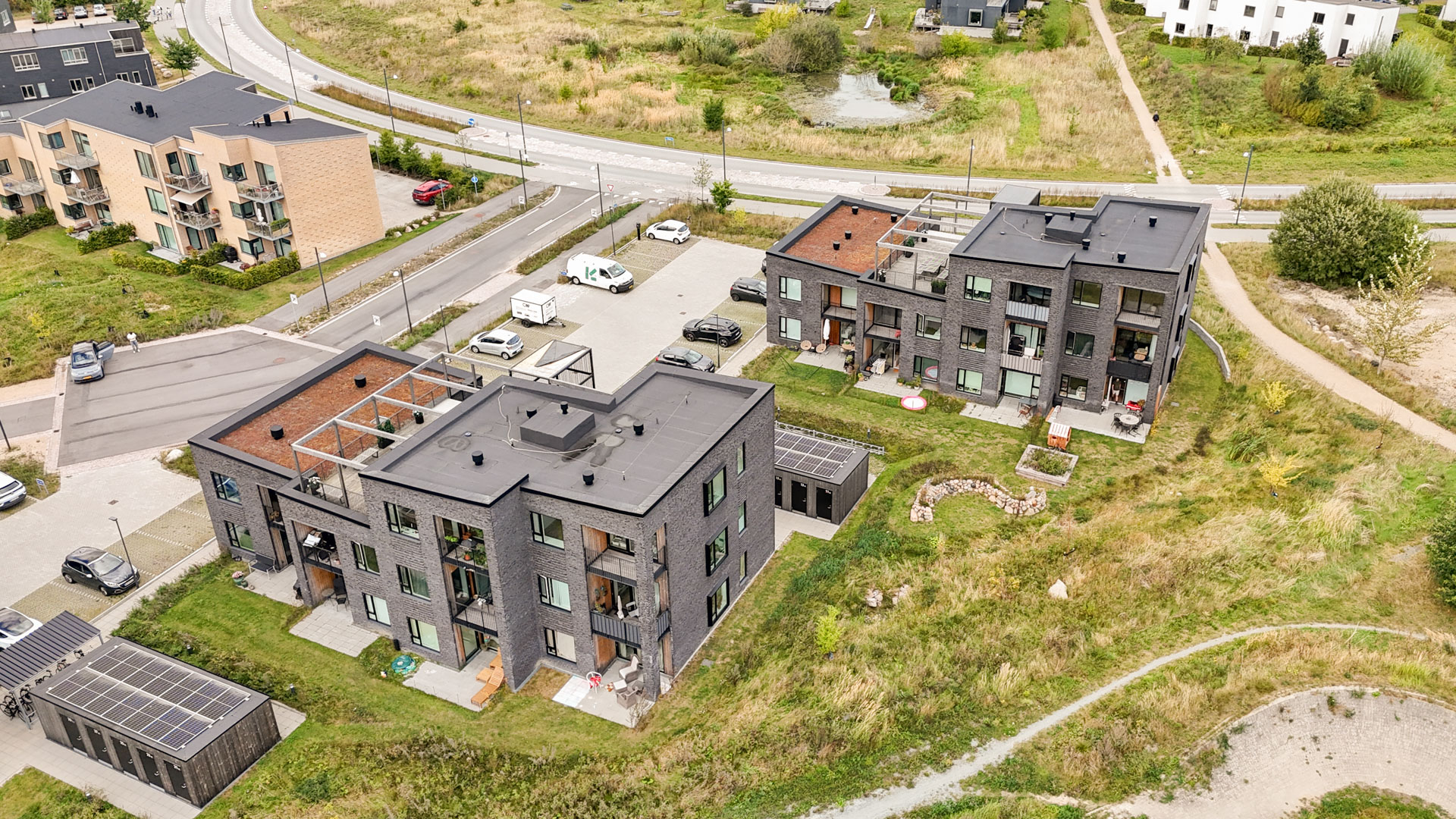 Thormann.as har opført nybyggeri af 50 Svanemærkede boliger på Hegnet 1, i Trekroner for Bellevue 19 A/S c/o Bellevue Ejendomsinvest A/S.