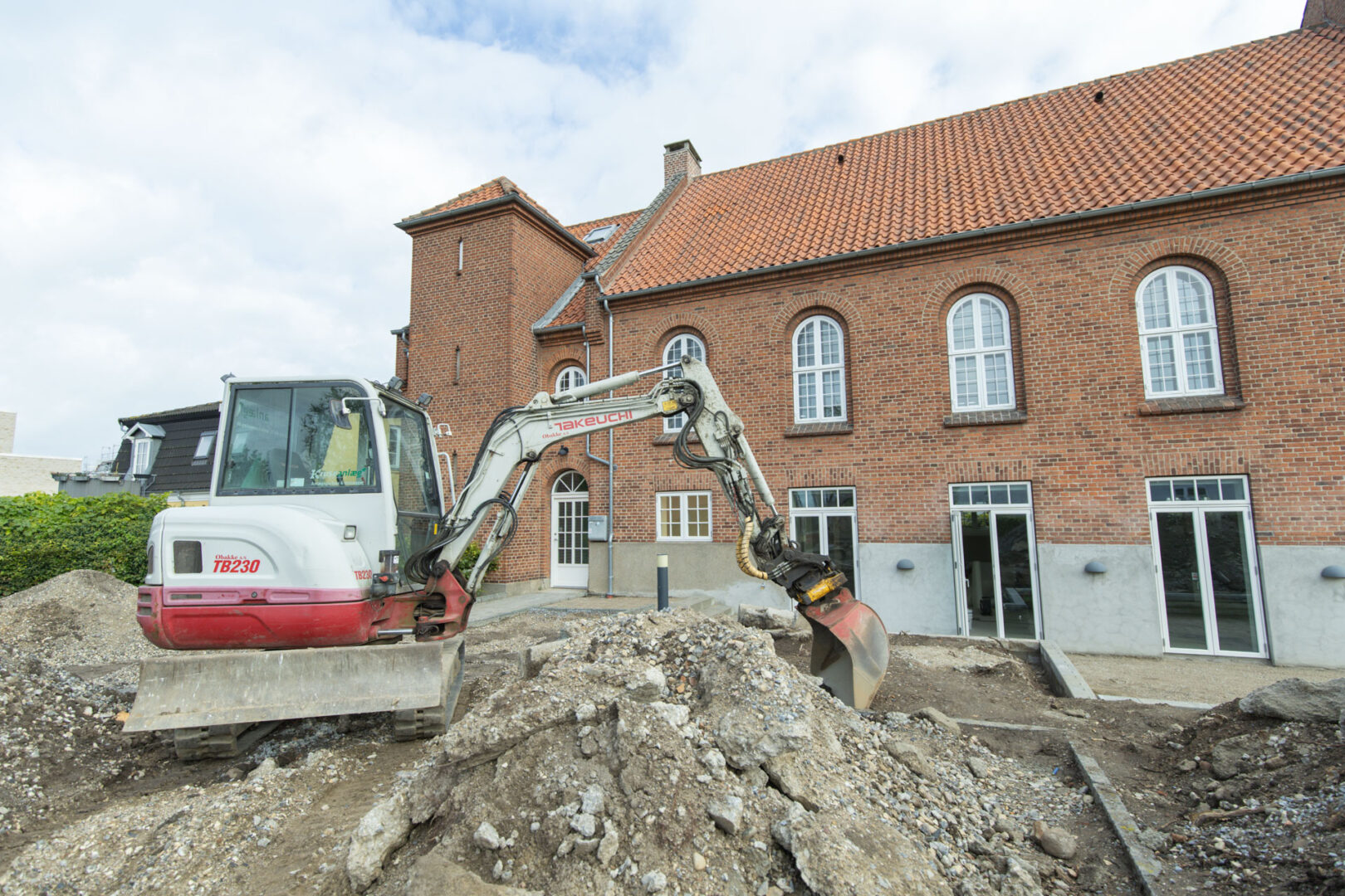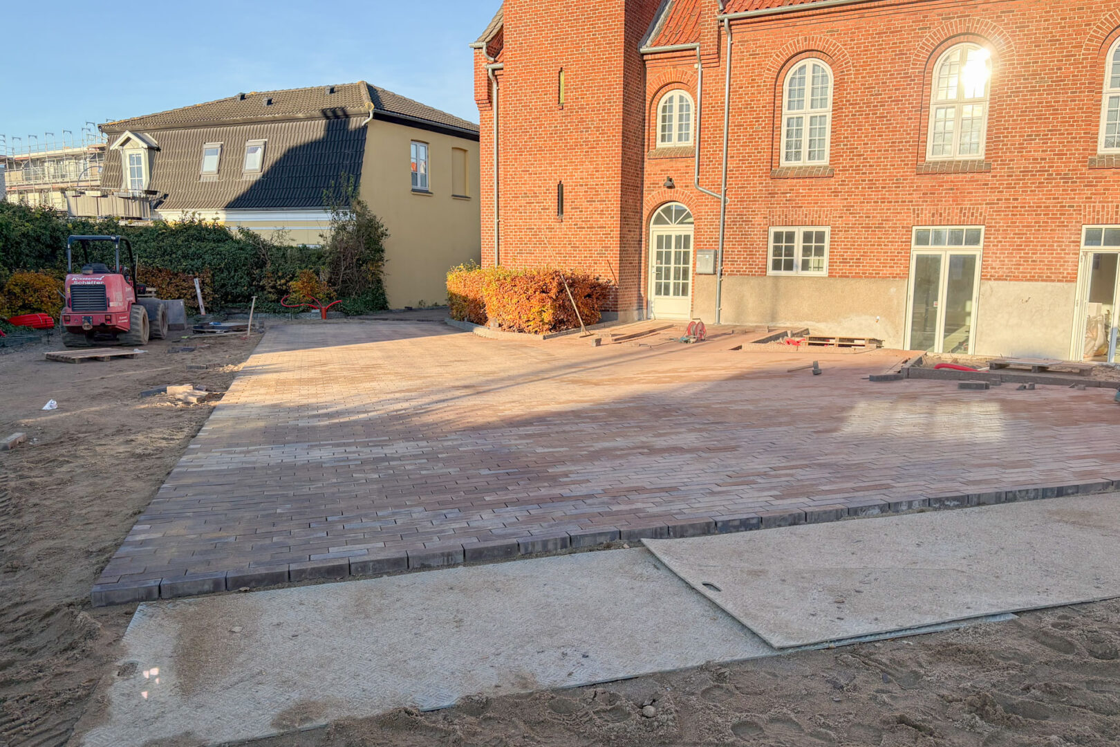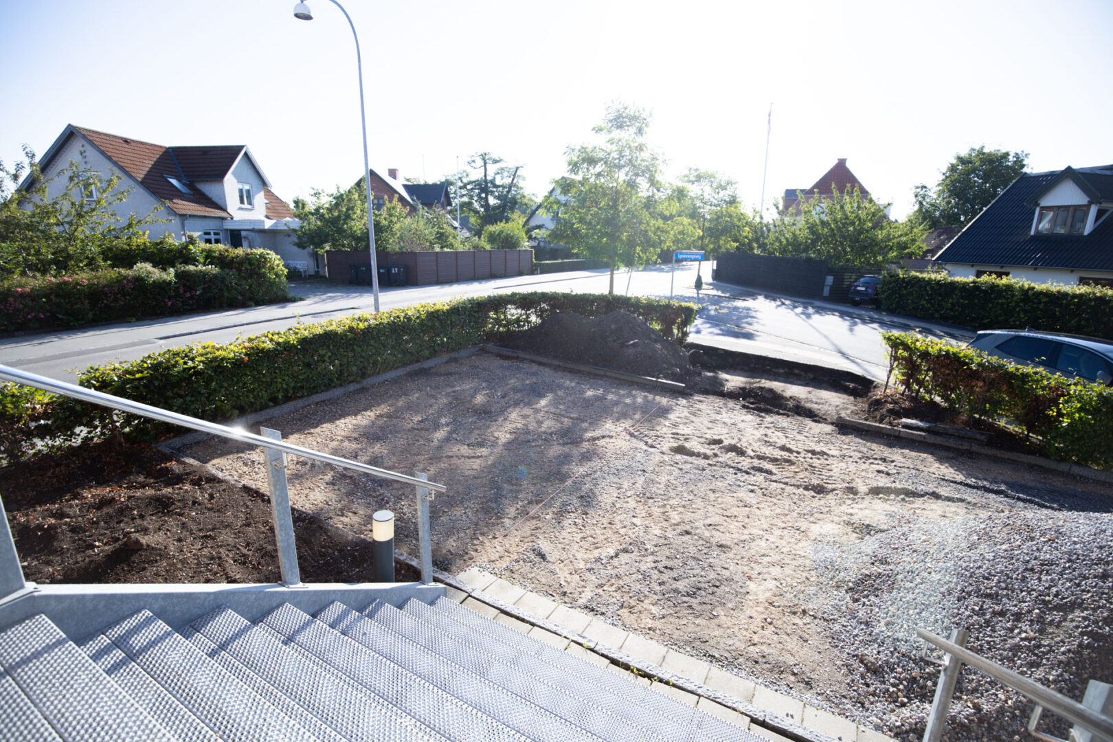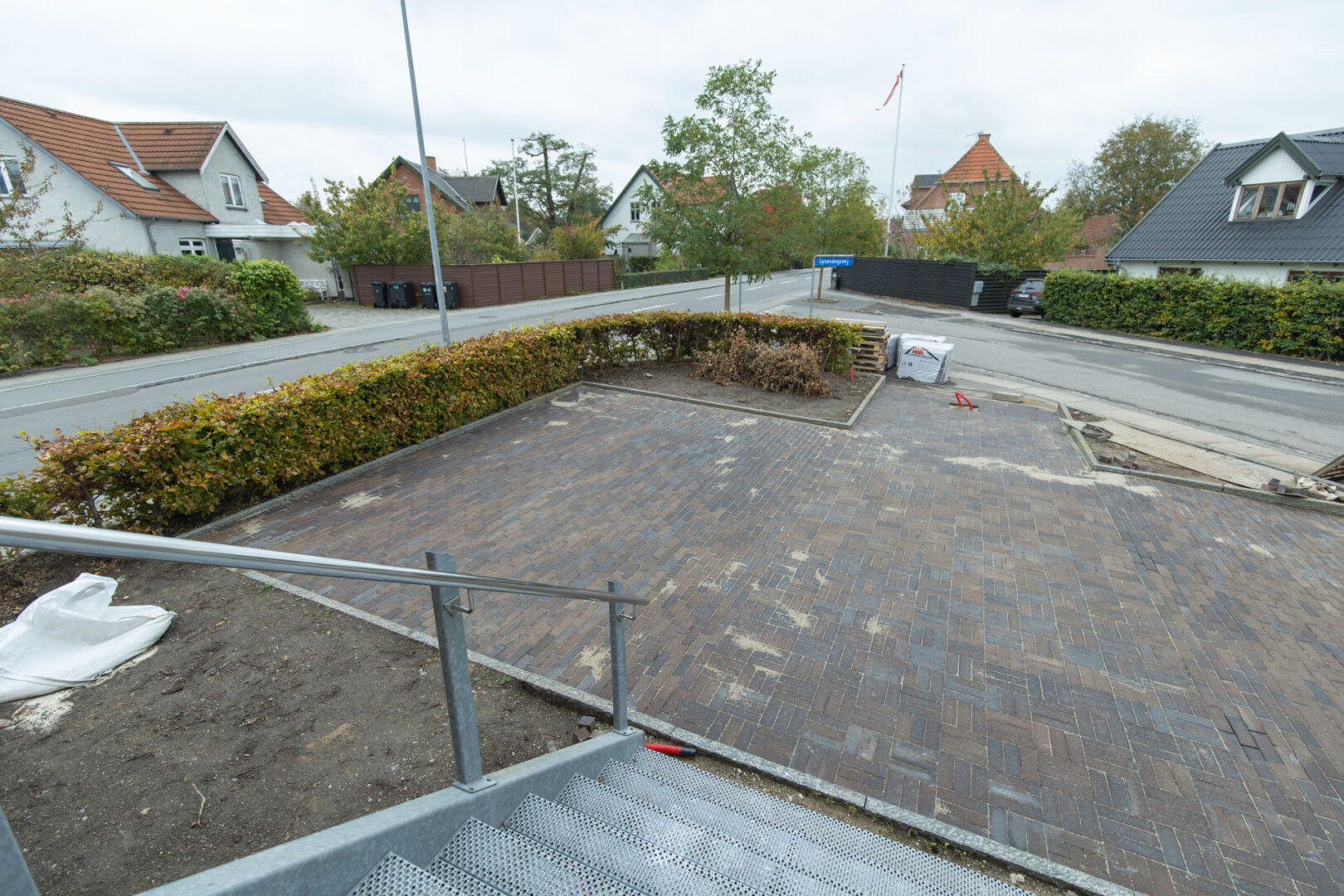Udvendigt anlægges ny terrasse og belægning i parkeringsarealer – og der udføres ny beplantning og træer på grunden.