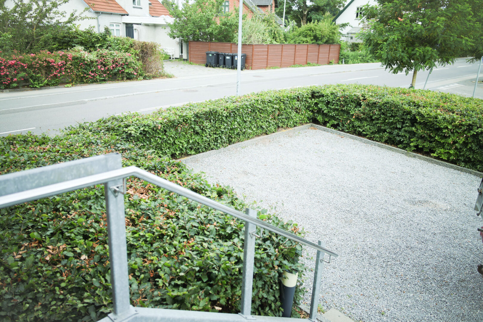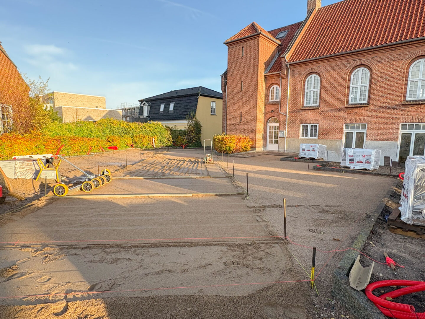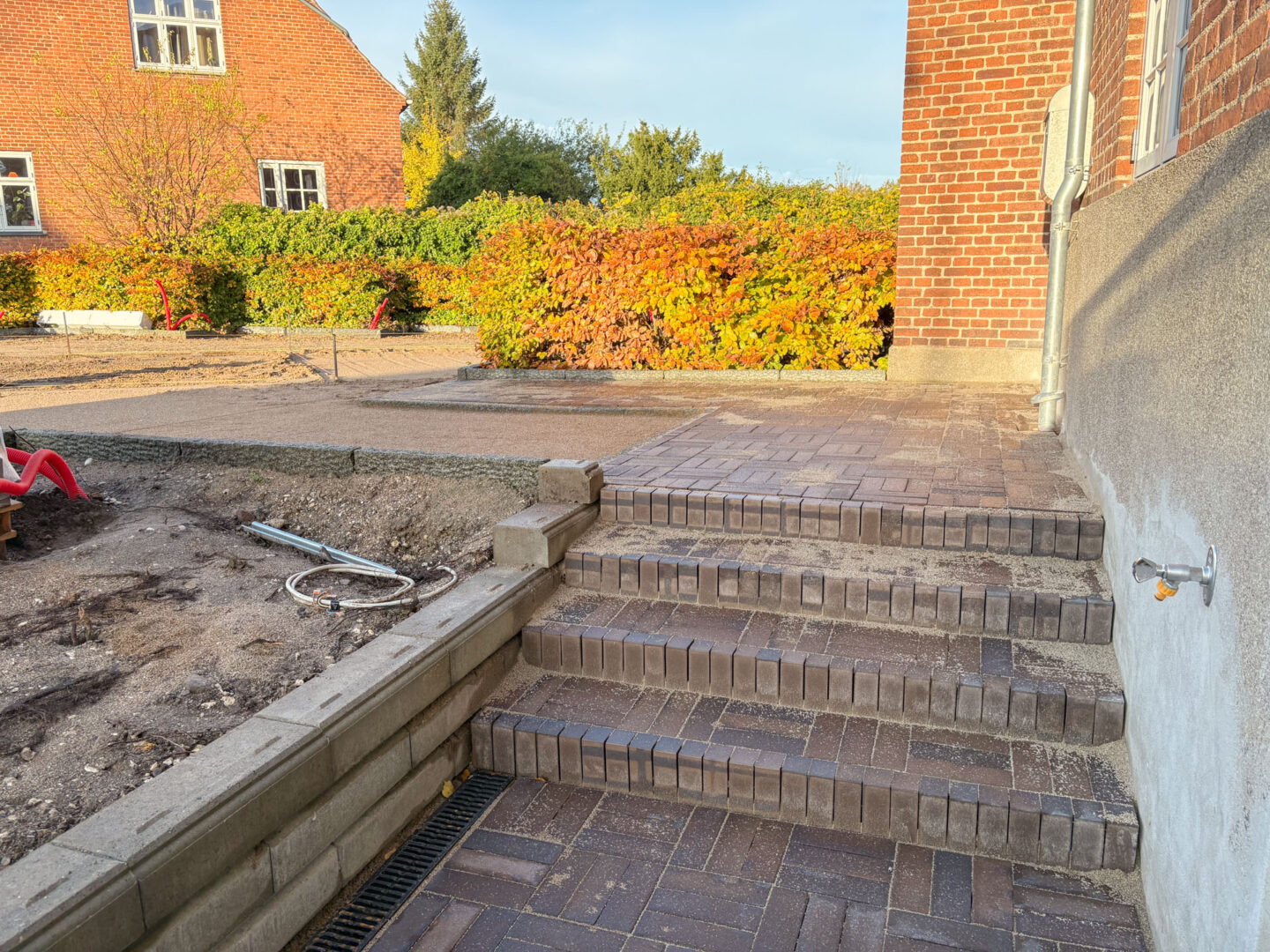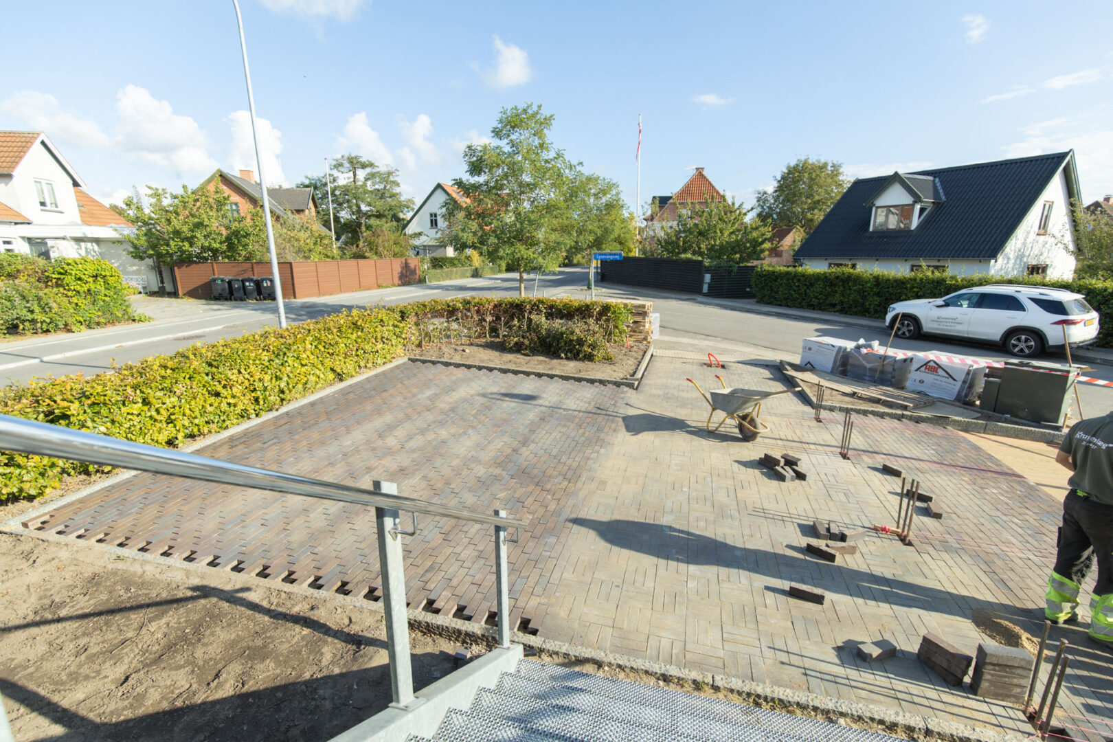 Udvendigt anlægges ny terrasse og belægning i parkeringsarealer – og der udføres ny beplantning og træer på grunden.