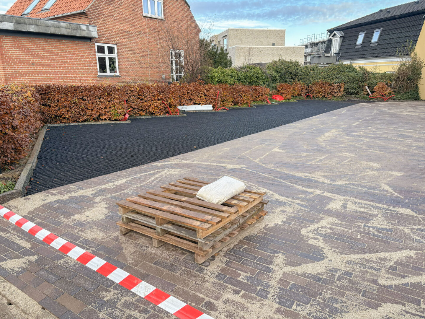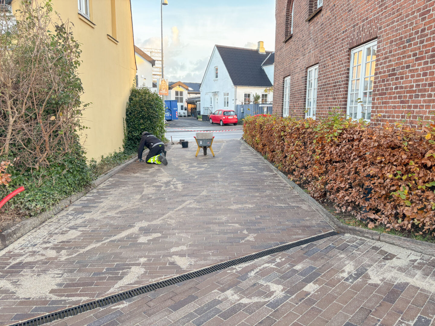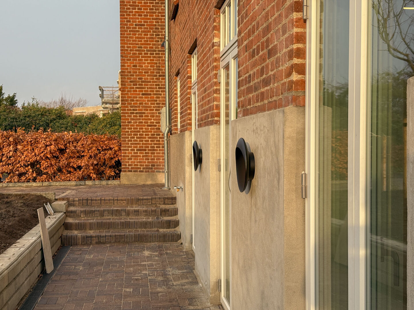 Udvendigt er der anlagt ny terrasse og belægning i parkeringsarealer – og der er udført ny beplantning og træer på grunden.